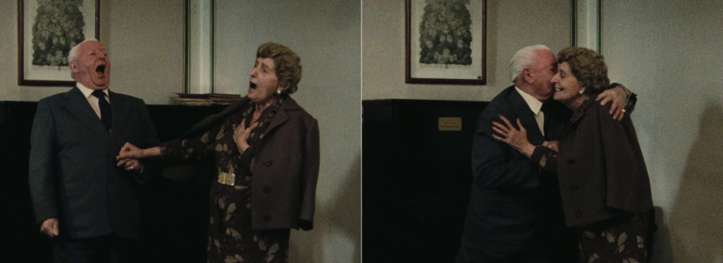 Ora, voltando à Casa Verdi, é claro que nenhum daqueles músicos, apesar de se ouvirem ainda algumas grandes vozes, está já “em beleza”; e é claro, em contrapartida, que todos eles gostariam de ser vistos ainda como grandes músicos, com prestações melhores do que not bad for an old man, old woman. Nessa medida, uma vez que cantam diante de uma equipa de fora, que assiste e que os filma para que outros venham a assistir, poder-se-ia dizer que estes artistas não sabem retirar-se. Mas o filme, justamente, não nos dá a ver apenas um elenco de “outrora grandes músicos”. O filme dá a ver uma outra coisa, uma coisa talvez maior do que estar “em beleza”: dá a ver o amor da música, de novo; o amor de tocar e cantar, bem indiferente à perfeição da execução. Quem poderia, por exemplo, impedir a senhora Baglio-Calini de subir — temerariamente! — à oitava de cima no fim do refrão de ’O Sole Mio e de acabar fora de tom?