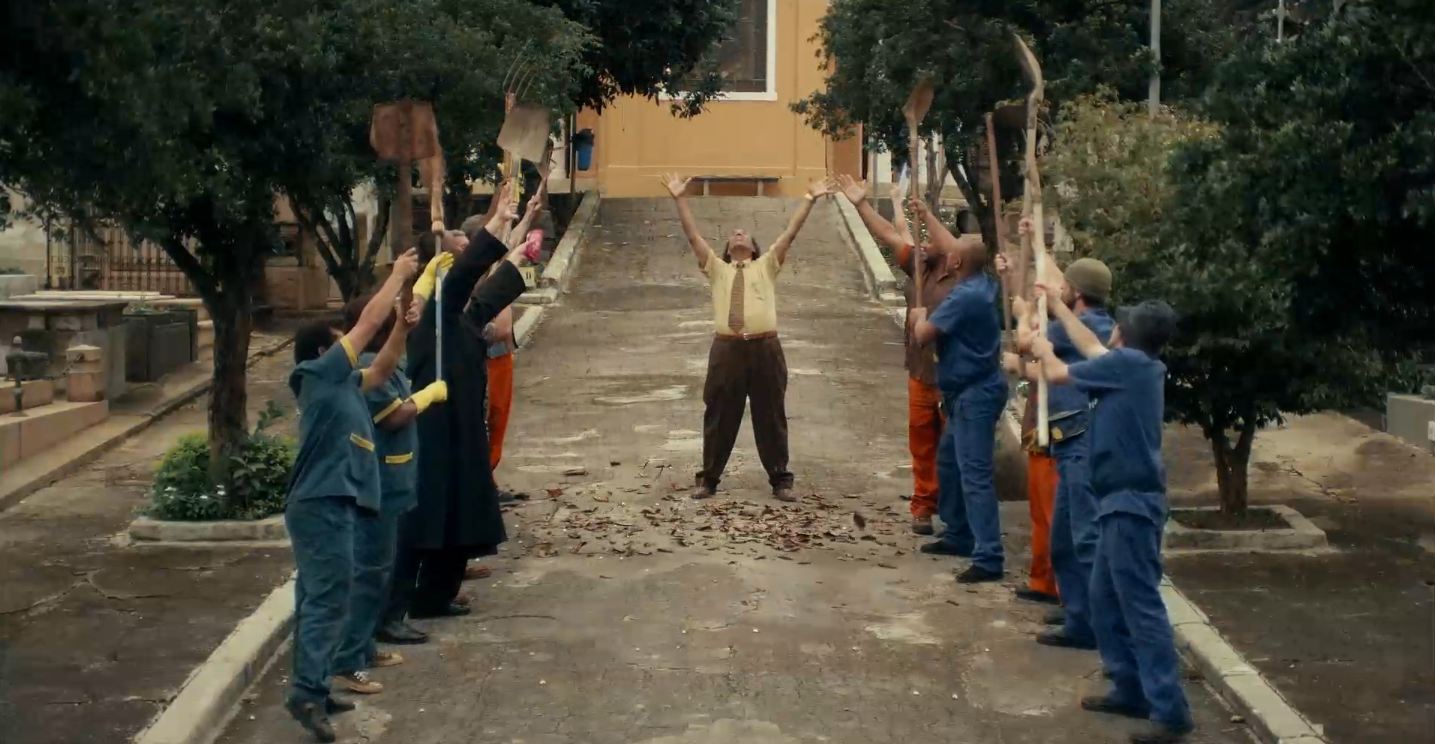 Provavelmente os dois títulos que mais imediatamente transmitem estas ideias de risco e desafio às convenções serão a curta-metragem de Kleber Mendonça Filho (realizador entrevistado pelo À pala de Walsh aqui), Vinil Verde (2004), e a primeira longa-metragem de Juliana Rojas, Sinfonia da Necrópole (2014). De um lado, encontramos uma história fantástica contada nos moldes de um livro infantil, uma proposta curiosa situada algures entre Shyamalan e Chris Marker, mas onde dificilmente se adivinha os passos que Kleber iria dar para realizar a sua primeira longa, O Som ao Redor (2012). Do outro lado, o desafio não é menor, bem pelo contrário: uma cineasta que se tem especializado no terror conceptual e atmosférico – veja-se a curta que assina com Marco Dutra, Lençol Branco (2003), também em exibição neste Doc no Rio – estreia-se no formato longo com uma comédia musical que tem como cenário um cemitério e protagonista um desajeitado “aprendiz de coveiro”. Apesar da boa disposição e de algum inspirado humor negro, não creio que esta espécie de Dellamorte Dellamore (O Homem do Cemitério, 1994) realizado por Jacques Demy seja paradigmático das qualidades de Juliana Rojas enquanto realizadora. Por exemplo, essas qualidades estão bem expressas na curta-metragem O duplo (2012), um dos mais notáveis filmes de terror que vi em muito tempo, mas que infelizmente não entra neste programa. Mesmo no que diz respeito ao trabalho que tem feito em colaboração com Marco Dutra penso que se perdeu com esta mostra a oportunidade de exibir Trabalhar Cansa (2011), filme ainda inédito em Portugal que, como tive ocasião de dizer ao realizador na entrevista que lhe fiz no passado mês de Abril, apresenta uma inesperada proximidade temática e filosófica com muitas das angústias que perpassam a sociedade europeia ou mesmo, muito particularmente, a sociedade portuguesa.