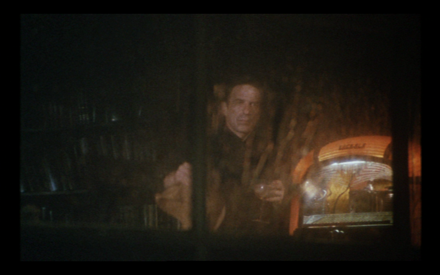 The Last Picture Show (A Última Sessão, 1971) é filme de uma coralidade imensa e no qual a música utilizada – a country e o folk americanos – serve de comentário permanente às cenas, umas vezes de forma explícita, outras de forma mais subtil. Ouvimos, por exemplo, “Cold, Cold Heart”, de Hank Williams, perfeitamente em linha com os corações dos homens e mulheres, velhos e novos, que habitam o filme de Bogdanovich, todos carentes e solitários, desesperadamente desejosos de uma chama que os aqueça mas já quase sem esperança (mesmo os corações dos mais jovens, como o de Sonny, numa contradição tão melancólica quanto todo o filme). “Cold”, também, porque, lá fora, o frio é muito, o vento não pára de assobiar e o calor da lareira não chega, é preciso outro tipo de calor (ou de fogo). O plano acima pertence a uma cena em que duas dessas lost souls se encontram e deixam, por uns instantes, de estar tão sozinhos, porque é irredutivelmente na comunicação, da mais profunda à mais corriqueira, que nos sentimos próximos uns dos outros, logo mais quentes, mais aconchegados. Enquanto come o prato que Genevieve lhe preparou, Sonny olha-a de alto a baixo (e… “mastiga-a” de alto a baixo), cheio de desejo (pelo seu corpo e pelo mito da “mulher mais velha” que ela carrega), e ela, com gosto, apercebendo-se disso mesmo, “apanha-o” olhando-o diretamente nos olhos (os olhos envergonhados de Sonny que fogem para a jukebox no plano acima), como quem diz “Hey Good Lookin’”, o título da música do mesmo Hank Williams que a jukebox insinua no ar. “(…) what ya got cookin’? / How’s about cooking somethin’ up with me?”, poderia ser a resposta musical-gastronómica de Sonny.