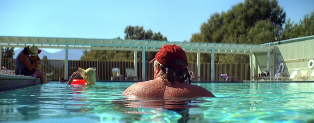 O centro do filme (ou pelo menos aquilo em que devíamos centrar o nosso olhar) são as suas desarmonias, as suas desproporções: uma aldeia-oásis que desponta no meio do deserto; um carro climatizado que avança pelo meio do calor; os sons que saem de duas bocas francesas e que colidem com o inglês daquelas outras bocas americanas – os primeiros soam a coisa ténue, esfumada, por oposição aos segundos, sons protuberantes, bem fixados; a figura pequena e franzina de Huppert ao lado do corpo gigantesco de Depardieu; o camiseiro alaranjado dela contra o amarelo da terra seca; um pequenino boné vermelho (Travis, agora Trump) no topo da cabeça de Depardieu, que podia ser um monstro marinho, submerso numa piscina muito azul.