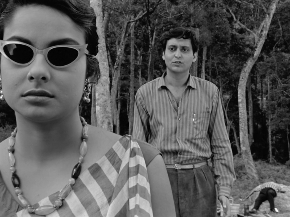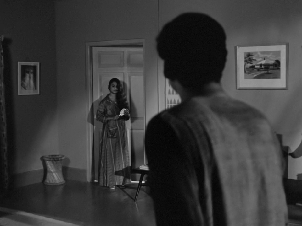A trama sentimental do filme de Ray coincidirá também, em traços gerais, com esta hipótese de argumento. Mas os jogos de (des)coincidência são aqui múltiplos. Num momento posterior, Bimal afirma: “you ought to be a film star yourself and not just write for them”, ou, referindo-se à esposa, propõe a Ami: “what an actress! Need a female lead for your film?”. Ao fazer isto, Bimal volta a espreitar para além do seu universo diegético, tornando evidente para o espectador a coincidência entre as personagens Ami e Karuna e os actores que lhes dão corpo (Soumitra Chatterjee e Madhabi Mukherjee), que o espectador conhece de outros filmes de Ray, e em particular como o par malfadado de Charulata (estreado um ano antes de Kapurush, em 1964). Ami e Soumitra, e Karuna e Madhabi, são, no filme de 1965, coincidentes numa mesma figura cinematográfica, bidimensional e feita de luz, simultaneamente com traços de realidade e de ficcionalidade.