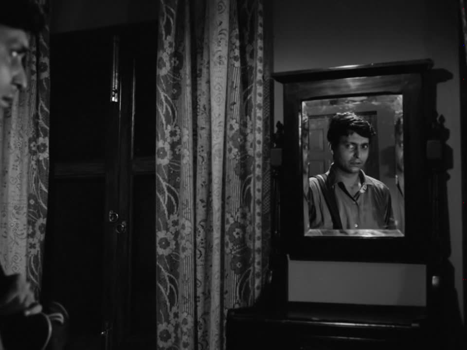 A insistência do filme em obstruir o caminho para a interpretação pode prender-se também, para além do primeiro nível da narrativa[1], com uma estética do obscurecimento que se reflecte ainda neste discurso reflexivo oferecido à margem. De tal forma consciente, desde o início, de ser um filme, Kapurush parece procurar um sentido, ou uma função, para a sua existência através da sua narrativa e das suas personagens, cujas motivações e sentidos, no entanto, constantemente escapam à compreensão.