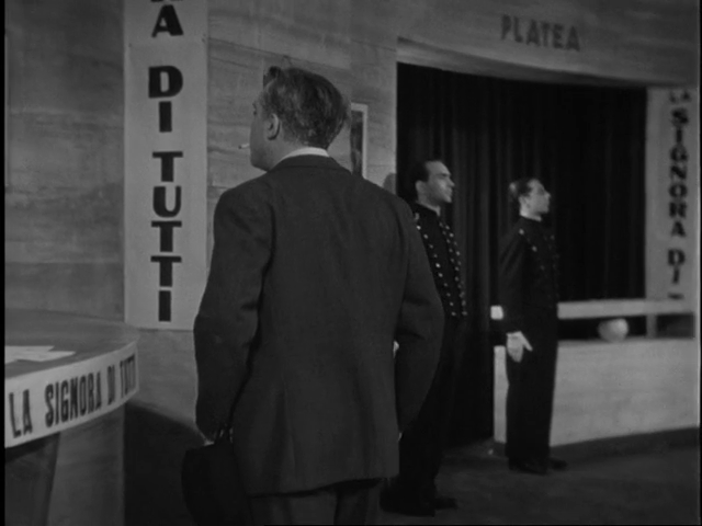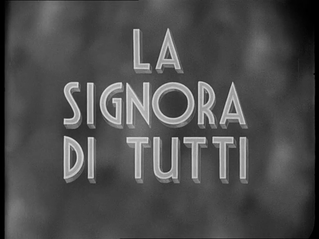 A tela está negra quando o rufar de tambores dá início ao primeiro tema musical e ao filme. Os créditos indicam que estamos a assistir a La signora di tutti (1934), uma produção de Novella-film baseada no romance de Salvator Gotta, interpretada por Isa Miranda, com canções de Daniel Dax, etc. (Max Ophüls não é creditado como realizador). Ao fundo, vêem-se discretas formas móveis, como fumo que ascendesse no ar.
