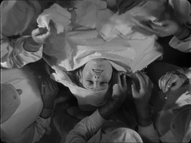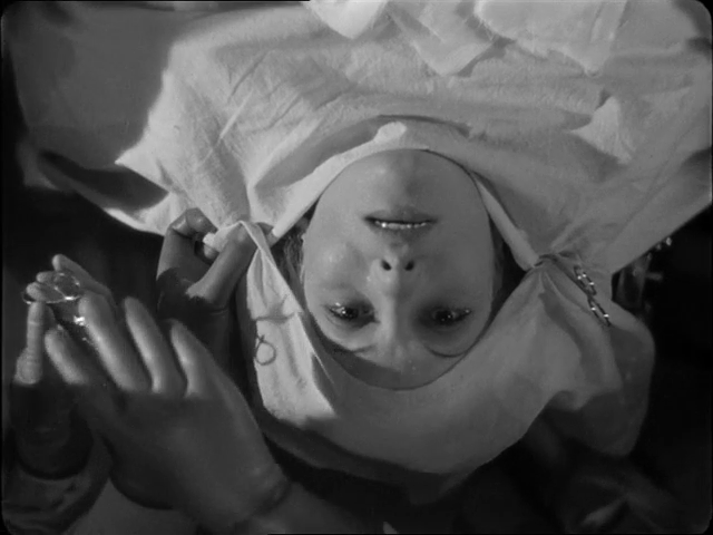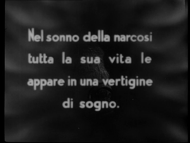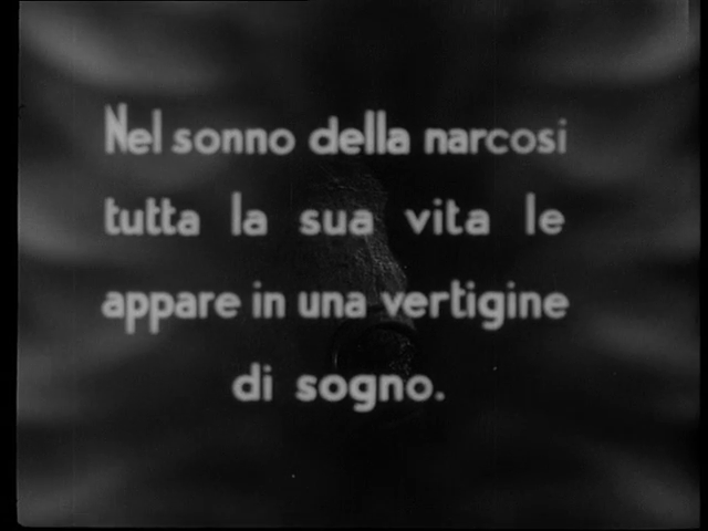 Os médicos preparam o gás anestésico, que desce sobre ela, semi-consciente, numa espécie de capacete. Um plano subjectivo – o primeiro até então – dá a ver o ponto de vista da máscara de gás a descer sobre a mulher, e o plano seguinte dá acesso ao ponto de vista desta, que vê a máscara cair sobre si. Regressa-se ao ponto de vista da máscara, que desce; depois, volta-se novamente ao ponto de vista dela; novamente ao ponto de vista da máscara; outra vez ao dela; e por fim ao da máscara, que se aproxima do rosto da moribunda até quase tocar-lhe, causando um efeito de desfocagem. Surge um grande plano da máscara (trata-se do ponto de vista dela, cujo campo de visão está então inteiramente ocupado pela máscara côncava), e um efeito de freeze sobre a máscara. Ouvem-se os gemidos da mulher, e o plano da máscara começa a misturar-se com uma imagem de fumo reminiscente dos créditos iniciais. Surge um intertítulo, onde se lê: “No sono da narcose toda a sua vida lhe surge numa vertigem de sonho.”