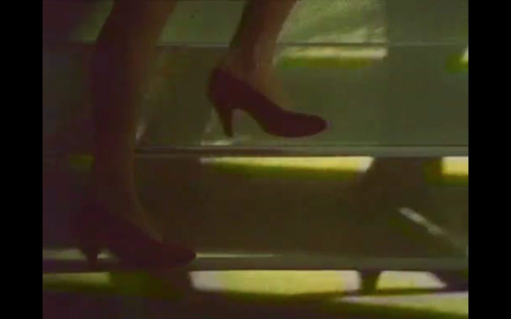 Sobe as escadas. Desce as escadas. Os sapatos sobem as escadas. Os sapatos descem as escadas (“que belos sapatos”). Os olhos acompanham o movimento repetido. O movimento é reflectido (“por baixo dos sapatos, não há escadas, não há chão: há projecção”). Os olhos acompanham o movimento repetido. O movimento do presente sobre o passado, o movimento da reflexão sobre o real.