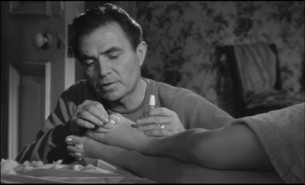 O britânico James Mason acabara de protagonizar A Star is Born (Nasceu Uma Estrela, 1954), de George Cukor, corrosivo e melancólico retrato de Hollywood, que colocara o actor como uma das figuras do star system. O seu Humbert herdou o perfil fleumático do actor, que nas ocasiões sociais surge quase indiferente, deslocado do modo de viver americano, da sua moral e das suas convenções. O protagonista questiona Charlotte, pergunta-lhe se ela não estará a ser demasiado liberal com Lolita, o que antecipa o seu estatuto de padrasto e amante, ciumento e repressor. Charlotte responderá que Humbert é antiquado, é por isso que ela gosta dele, sendo que antiquado aqui é sinónimo de europeu, de um mundo antigo em confronto com o admirável mundo novo da América. A viúva insinua-se e Hubert procura esquivar-se. O diário escrito pelo protagonista, que veremos a condicionar a narrativa e o destino dos personagens, impõe a importância das palavras e da Literatura como o barómetro da moral.