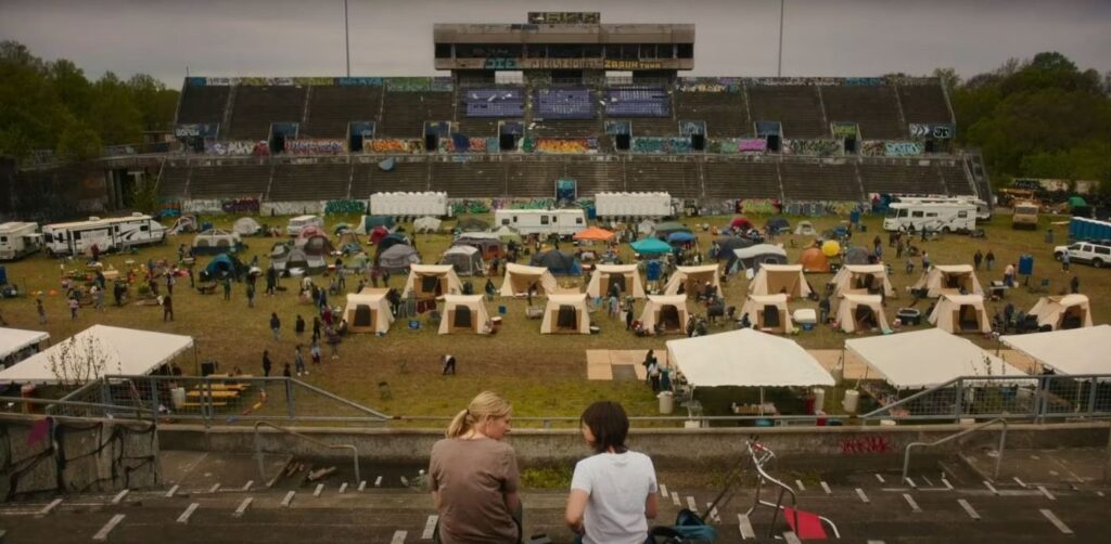 Regresso ao teu comentário sobre a guerra acontecer também muito mais ao nível de conflitos ou temas mais clássicos, e do estado do grupo unido entre si mas a passar por diferentes “guerras” internas – parece-me ser precisamente a chave do filme para nos aproximarmos destas personagens e criar empatia através das suas diferentes perspectivas e tormentas pessoais. É o fio narrativo dominante do filme, especialmente se pensarmos nos caminhos opostos entre as duas foto-jornalistas e a forma como reagem a uma nova realidade, mas está também presente nas reacções impulsivas de Joe, e até do jornalista mais velho (este ainda mais consciente da sua mortalidade). É algo que será mais universal e não tanto específico a esta situação, e parece-me ser no fundo um dos temas que Garland procura explorar ao longo da sua obra, se a tentarmos olhar como um todo: a reacção perante uma realidade estranha e ameaçadora, enfrentar os nossos medos a materializarem-se, mostrar personagens a confrontarem-se com o seu mundo a ruir – como naquela imagem do grito mudo de Joe, como no caso de Lee, que depois de anos a fotografar conflitos no estrangeiro, vê essa realidade chegar a casa, percebe a futilidade dos seus avisos. Isso tanto acontece em Ex Machina (2014), como em Annihilation (2018), como em Devs (2020), distopias não muito distantes no tempo ou realidade, que são ficções científicas mas filmadas a pensar no presente e nas suas questões. Talvez por isso Civil War não esteja tão preocupado com um momento actual específico e apenas americano, mas, ao focar-se nestas personagens, na forma como reagimos e pensamos sobre estas possíveis ameaças e mantemos a nossa humanidade (e união) perante a materialização de cenários impensáveis.