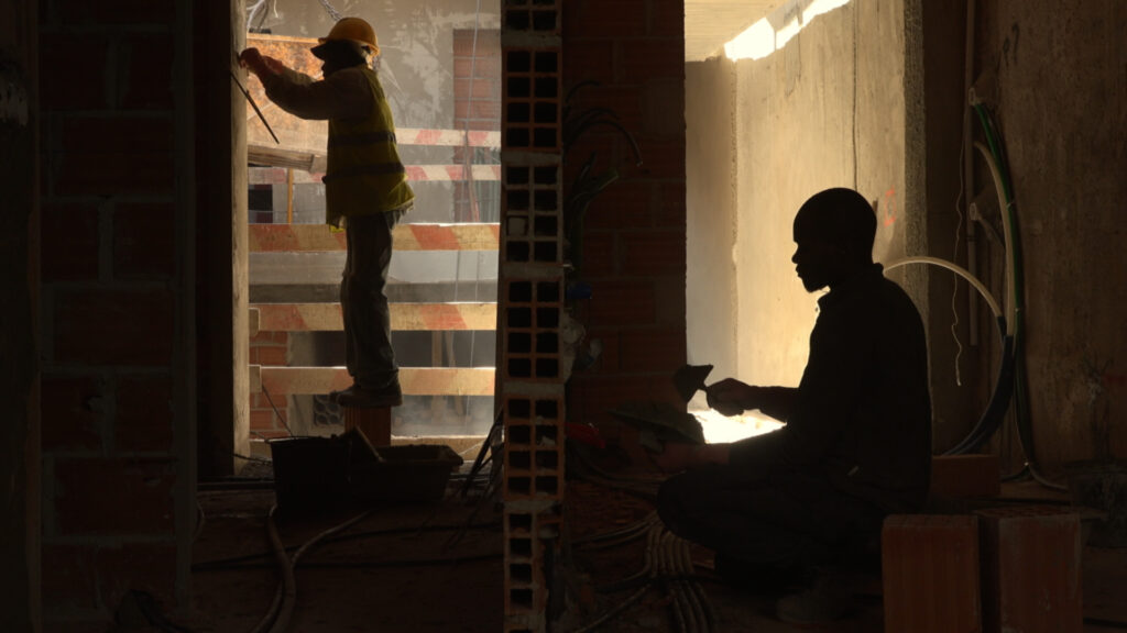 Filmado pelo próprio João Rosas (com a câmara que comprou com a desculpa de documentar o crescimento – ! – do filho recém-nascido), A Morte trata-se de um documentário observacional onde o realizador acompanha a demolição e reconstrução de um prédio na Rua da Rosa (no Bairro Alto – a partir de 2016, Rosas muda-se para o Chiado), onde a câmara e o próprio vão tentando estabelecer relações de intimidade com os vários trabalhadores da construção civil que por ali vão passando ao longo dos meses – intimidade essa dificultada pela precariedade dos contratos de trabalho temporário que transformam a obra num carrossel de figuras anónimas. Se é possível afirmar que o gosto pelo retrato prossegue (e mais que isso, o desejo de acompanhar e a curiosidade de conhecer), os filmes e as personagens não podiam ser mais distantes. Onde na trilogia tudo é elegância e naturalismo (a câmara de Rosas desliza em travellings delicados ou deixa-se estar, em plano aberto, observando a coreografia do quotidiano), em A Morte impera a câmara à mão, os olhares para a objetiva e as conversas com o realizador, fora de campo. Mais que isso, onde a trilogia retrata uma geração aburguesada de lisboetas de classe média atormentados pelo seu próprio tédio, A Morte entrega-se aos outros, àqueles que “fazem Lisboa”, mas que não “vivem Lisboa”: os emigrantes, os sem-papéis, os não-brancos, os precários, os explorados, os exaustos…