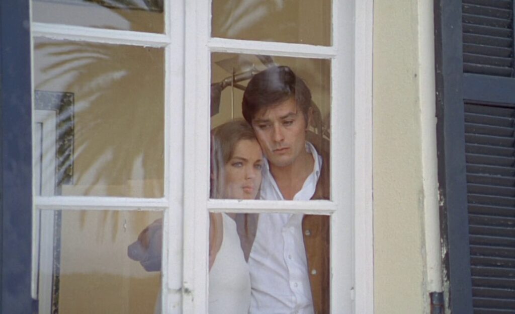 Voltam a reunir-se ao sol, com Delon a tentar mostrar-se desinteressado e com Schneider a espicaçá-lo, a antecipar a chegada iminente de Harry, que traz um motivo adicional: uma filha, que Jean-Paul desconhecia. Logo aqui, inicia-se o esboço da densidade psicológica do personagem de Delon, a que se acrescentará a informação de que tentou suicidar-se, antes de conhecer Marianne. Tínhamos destacado, no texto dedicado a Plein Soleil, a passagem de Romy Schneider pelo set, assinalada por um cameo, que parecia informar o espectador do futuro da relação amorosa de uma parelha de actores em ascensão na década de 1960: ela mais deambulante, a experimentar cineastas europeus, mesclados com Welles e Preminger, que também se passearam pela Europa; Delon a apontar ao coração dos grandes autores do eixo franco-italiano, como protagonista de Visconti, Antonioni ou Melville. Aquela casa com piscina, ao largo da Cote d’Azur, marcaria o reencontro do casal dentro do ecrã, depois da separação em 1963, motivada pela relação de Delon com a também actriz, Nathalie Delon. Há uma vontade, partilhada com o espectador, de contaminar, de adensar o filme com o historial associado à relação entre Delon e Schneider, algo que é intensificado pela informação de que foi Delon quem pediu ao realizador Jacques Deray a contratação dela, numa tentativa de que a rodagem proporcionasse uma reconciliação com a actriz, algo que Delon já perseguira antes e a que Romy Schneider sucessivamente escapou.